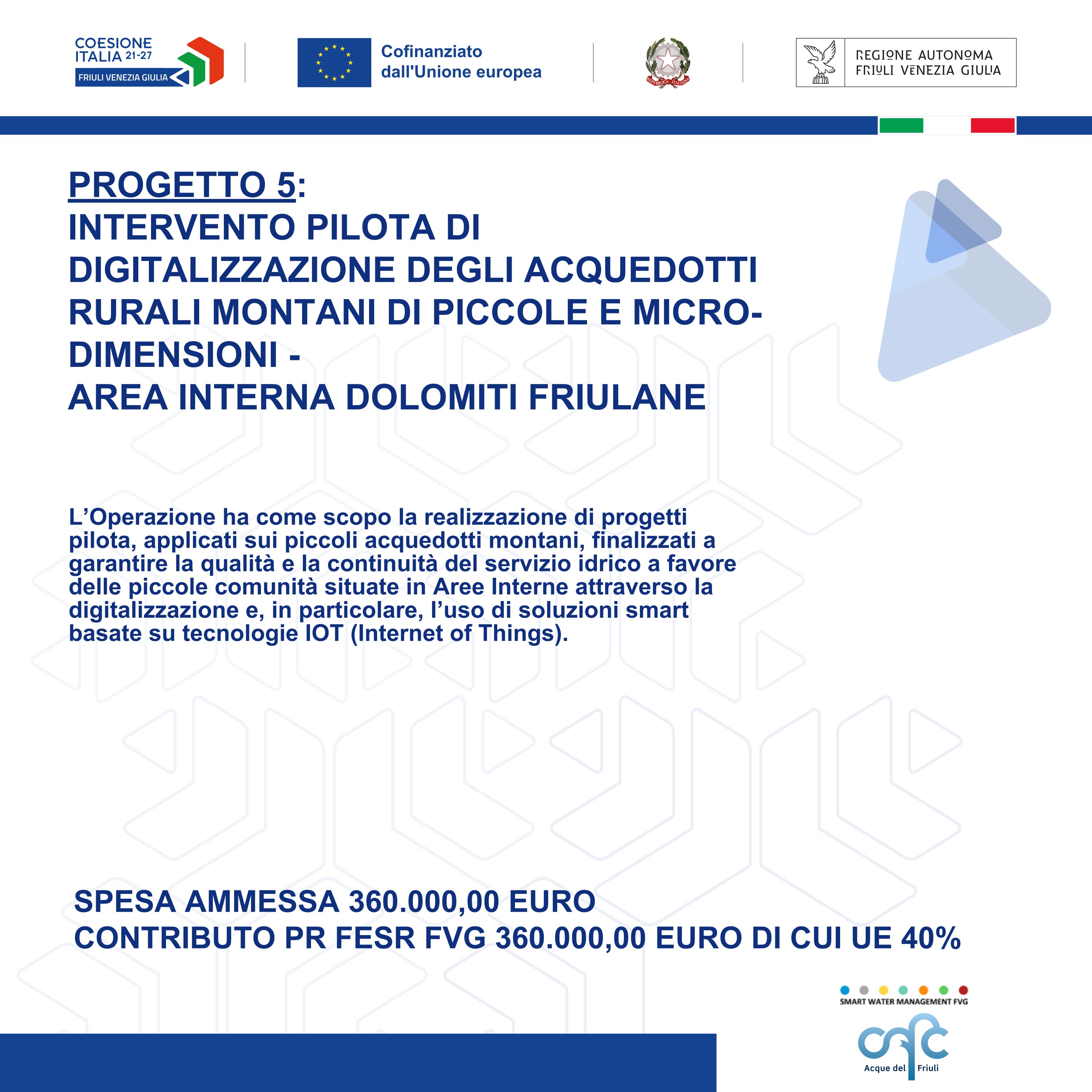 Progetto 5: Digitalizzazione acquedotti - Area Interna Dolomiti Friulane